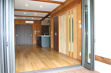 特長 ログハウス風のLDKやこだわりのリウッドデッキに、広々としたシューズクロークで快適に。