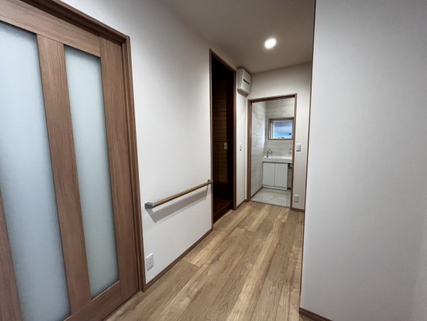 特長 2階部分をそのままに、1階のみをバリアフリーに増改築しました。地震対策として重かった瓦屋根を軽くて丈夫な鉄板葺きにし、住宅省エネの補助金を利用して、床・壁・天井・開口部は断熱性能を大幅に向上させることができました。ご高齢のご夫婦のため 和室から洋室にして段差をなくしたり、玄関にはスロープ、玄関・廊下・トイレには手すりを設けたり、新設の建具をすべて引き戸にしたりと、安心して部屋を行き来することができるようになりました。