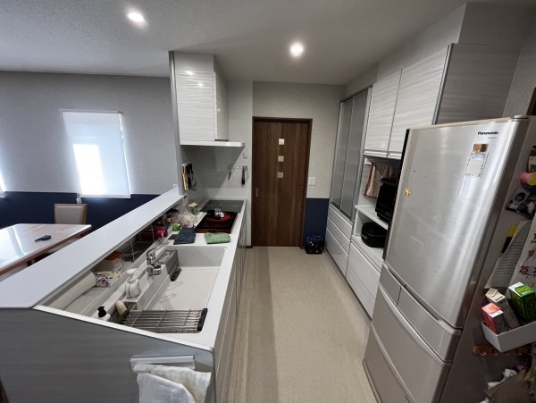 特長 LDK部分の改修を行い、対面キッチンを採用したことで 閉鎖的だった食卓が広々とした空間になりました。たっぷり収納できるパントリー・ユーティリティルーム・キッチンが隣接していることで家事動線も短縮されました。LDKの壁には、ネコちゃんのひっかき傷に強いクロスを腰壁まで貼っているため安心です。