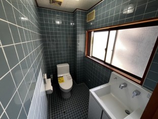 • 和式トイレと小便器を取外し、新しく洋式トイレと洗面器を取り付けました。また、傷んでいた一部の壁タイルを張り替えて補修しました。